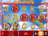 The rules of Cai Hong are simple. There are 5 reels, and all symbols pay left to right except for scattered Rainbows, which pay any direction. The God of Wealth is a Wild that substitutes for everything except for the Rainbow. When the God of Wealth appears on a winning spin, he generously doubles your prize.