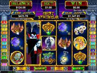 Interested in finding the mysterious Count and cashing in on his bonus rewards? Then start playing Count Spectacular, the 5-Reel online slot machine with up to 25 paylines, outrageous bonuses and Jackpots available for you. When the Count appears simultaneously on reels 1 and 5, players are rewarded with either 12 Free Games with Triple bonuses or 4 Re-spins at the same bet amount and pay lines as in the triggering spin.