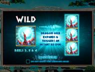 The “Dragon Orb” is the Wild symbol, and counts for every other symbol. When it appears, you win an Immediate Free Re-Spin while the Wild holds its place. If, after a Re-Spin, 1 or more re-spinning reels have an expanded Dragon Orb, all reels with expanded Dragon Orbs are held while another Free Re-Spin occurs.