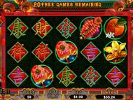 The Lucky Dog is the Wild symbol, and counts for every symbol including the scatters. Prizes are doubled when the Dog appears in a win. The Zodiac counts as the scatter symbol and the free games feature is triggered when three or more scatters appear anywhere on the reels. Win up to 30 free games, which can be doubled if no Wilds appear during the triggering combination. All prizes are also tripled during the free games feature. The game has one minor and one major progressive jackpot and the top prize is 30,000 times the bet per line.