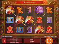 The Rooster is the Wild symbol, and counts for every other symbol except the scatter. Any scatter win awards you up to 25 free games, and there is a chance that a Fire Claw Multiplier will be activated during the free-spins feature.