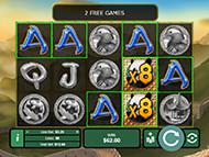 The appearance of three or more scatters during a normal game triggers a re-spin, and 8 free games are awarded after the re-spin for a chance to land more scatters and unlock additional free games and prize multipliers