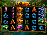 The rules of T-Rex: Wild Attack are simple and easy to follow. The game features 5 reels and 30 fixed paylines with a Wild that replaces all symbols in the game apart from the Scatter. Land 3 or more of the Egg Scatter symbol to trigger up to 20 Free Games and up to 5x Multipliers. The Cascade feature is triggered by the T-Rex, which also ats as the Wild and replaces low-paying symbols in the game game. The Cascade feature is triggered by the appearance of two or more Wilds during base game. The top award is 50,000 times the bet per line.