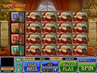 You’ve made it into Santa’s good books and it’s time to celebrate with the ultimate online slots game. This one has it all including two feature games that you can get into by hitting three The Nice List symbols, special All Ways Pays technology that brings you 1024 possible combinations, and an amazing Lucky Feature game that randomly hooks you up with up to 10 free games after a regular spin, whether or not you won something already.